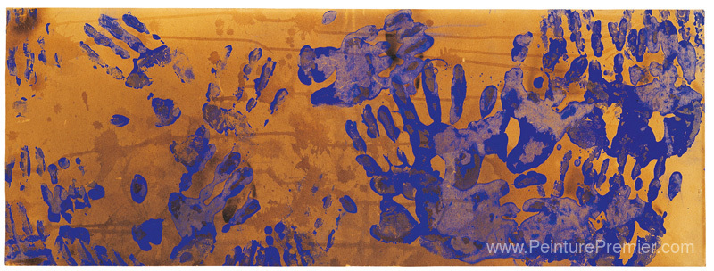 Nous vous proposons une reproduction artisanale sur toile du célèbre tableau 'Peinture de feu de couleur sans titre' de Yves Klein, provenant du Musée de la Reproduction.