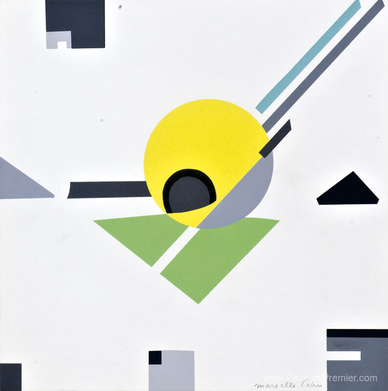 Nous vous proposons une reproduction artisanale sur toile du célèbre tableau 'Composizione' de Marcelle Cahn, provenant du Musée de la Reproduction.