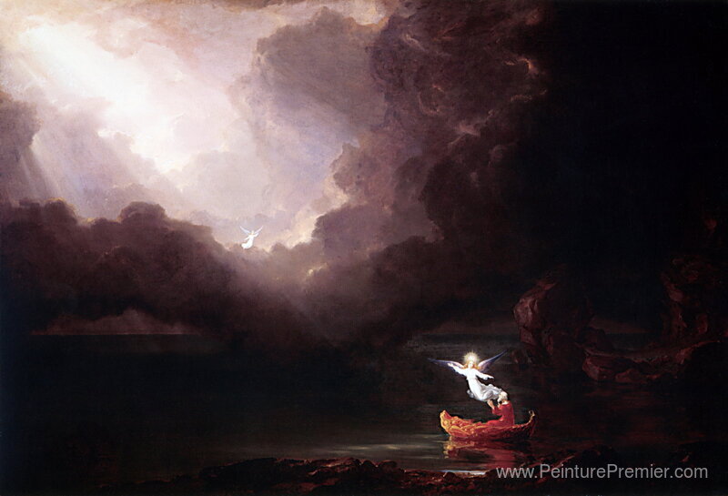 Nous vous proposons une reproduction artisanale sur toile du célèbre tableau 'Le voyage de la vie: la vieillesse' de Thomas Cole, provenant du Musée de la Reproduction.