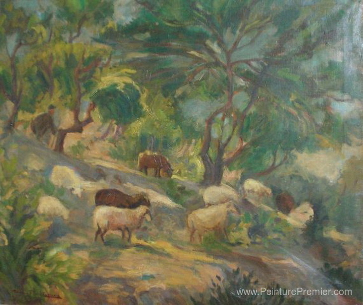 Nous vous proposons une reproduction artisanale sur toile du célèbre tableau 'Mouton sur une pente' de Thalia Flora-Karavia , provenant du Musée de la Reproduction.