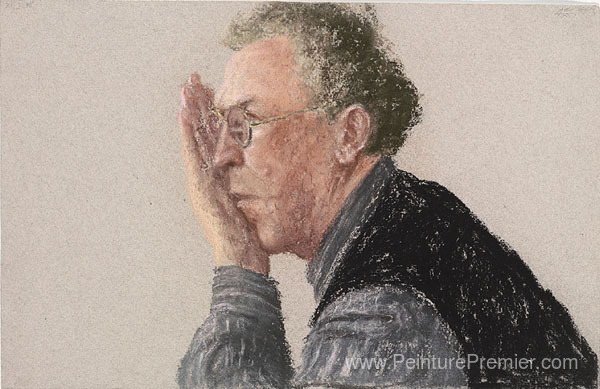 Nous vous proposons une reproduction artisanale sur toile du célèbre tableau 'Autoportrait avec la main' de Avigdor Arikha, provenant du Musée de la Reproduction.