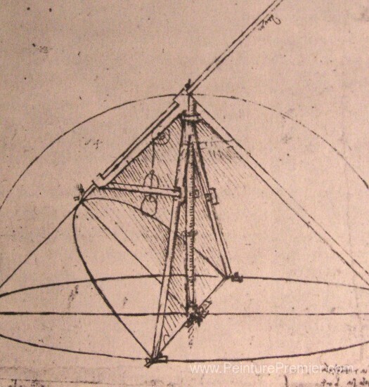 Nous vous proposons une reproduction artisanale sur toile du célèbre tableau 'Conception pour une boussole parabolique' de Leonardo da Vinci, provenant du Musée de la Reproduction.