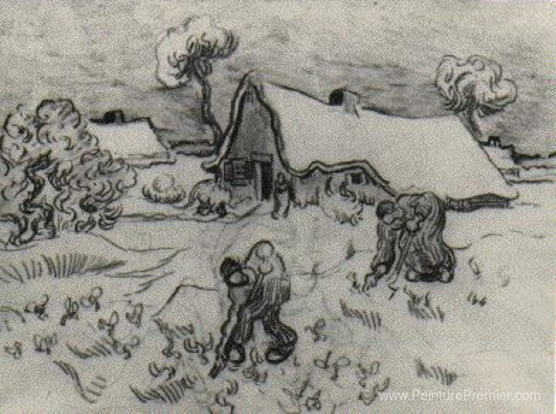 Nous vous proposons une reproduction artisanale sur toile du célèbre tableau 'Croquis des diggers et autres figures' de Vincent van Gogh, provenant du Musée de la Reproduction.
