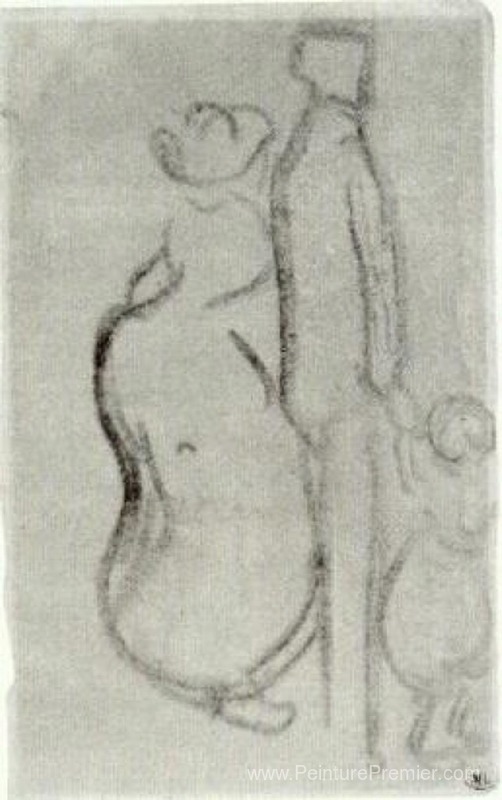 Nous vous proposons une reproduction artisanale sur toile du célèbre tableau 'Croquis d'un couple marchant avec un enfant' de Vincent van Gogh, provenant du Musée de la Reproduction.