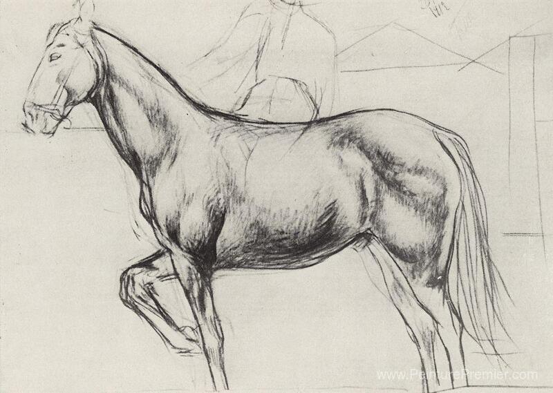 Nous vous proposons une reproduction artisanale sur toile du célèbre tableau 'Esquisse pour la peinture baignant le cheval rouge' de Kuzma Petrov-Vodkin, provenant du Musée de la Reproduction.