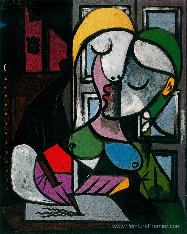 Nous vous proposons une reproduction artisanale sur toile du célèbre tableau 'Écriture de femmes' de Pablo Picasso, provenant du Musée de la Reproduction.