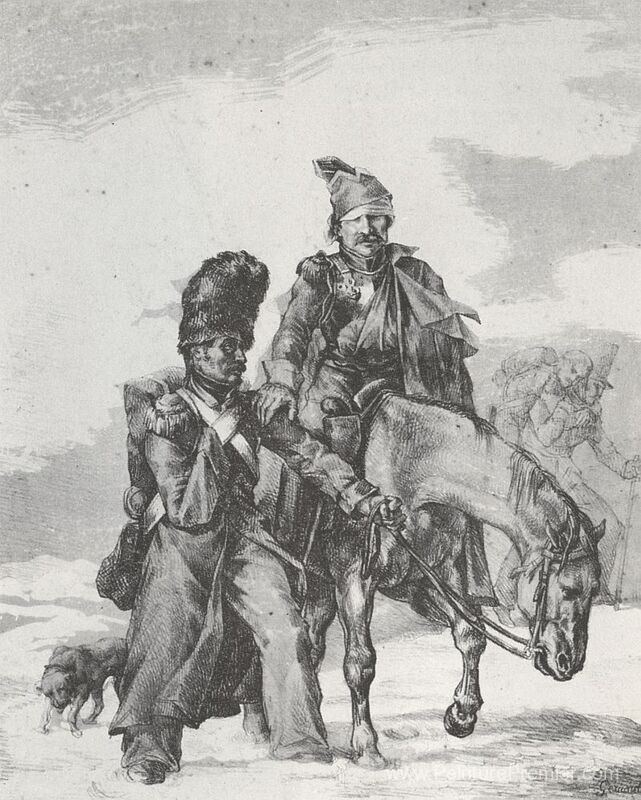 Nous vous proposons une reproduction artisanale sur toile du célèbre tableau 'Le retour de la Russie' de Theodore Gericault, provenant du Musée de la Reproduction.