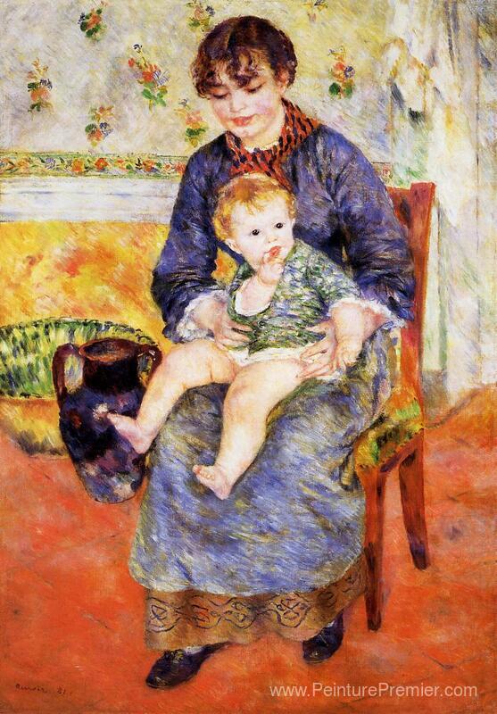 Nous vous proposons une reproduction artisanale sur toile du célèbre tableau 'Mère et l'enfant' de Pierre-Auguste Renoir, provenant du Musée de la Reproduction.