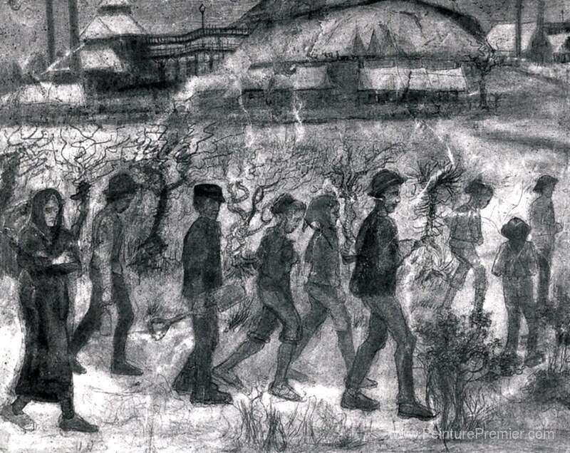 Nous vous proposons une reproduction artisanale sur toile du célèbre tableau 'Mineurs' de Vincent van Gogh, provenant du Musée de la Reproduction.