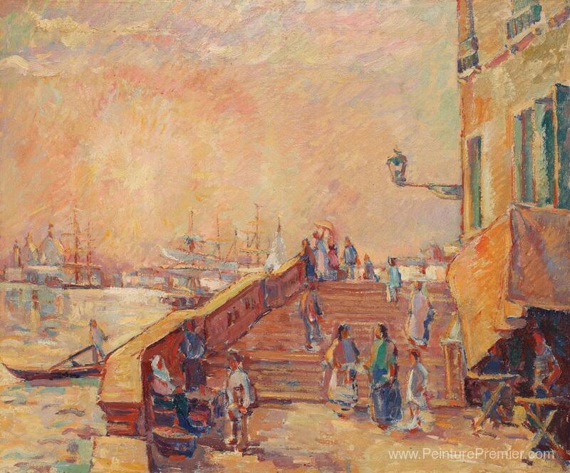 Nous vous proposons une reproduction artisanale sur toile du célèbre tableau 'Venise Cliff vu de San Marco Piazza' de Nicolae Darascu, provenant du Musée de la Reproduction.