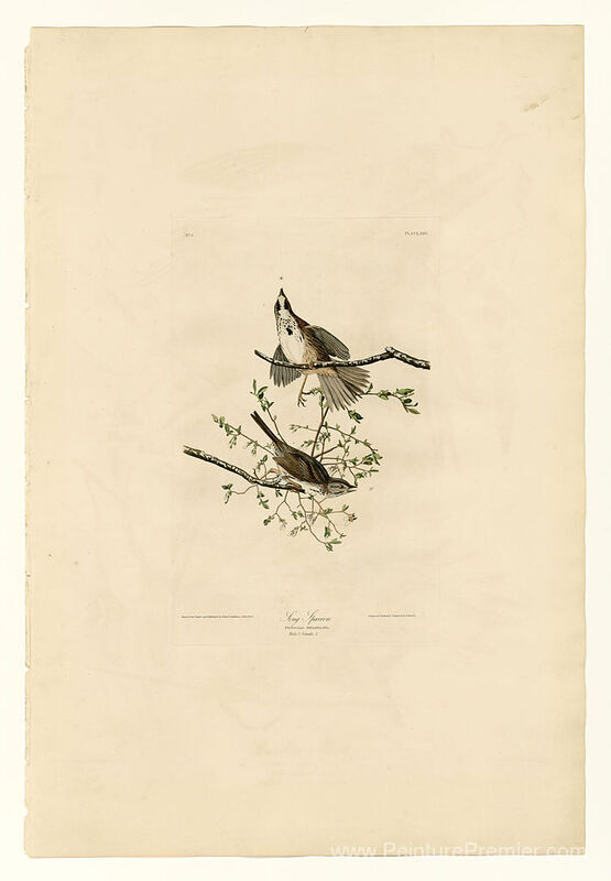 Nous vous proposons une reproduction artisanale sur toile du célèbre tableau 'Planche 25. Chanson Sparrow' de John James Audubon, provenant du Musée de la Reproduction.