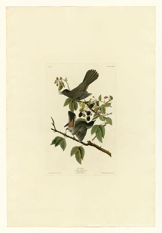 Nous vous proposons une reproduction artisanale sur toile du célèbre tableau 'Plaque 128 Cat Bird' de John James Audubon, provenant du Musée de la Reproduction.