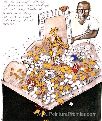 Nous vous proposons une reproduction artisanale sur toile du célèbre tableau 'Thruway' de Sue Coe, provenant du Musée de la Reproduction.