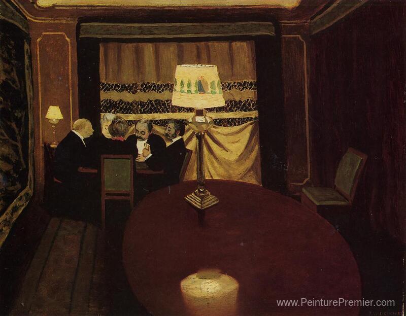 Nous vous proposons une reproduction artisanale sur toile du célèbre tableau 'Le jeu de poker' de Felix Vallotton , provenant du Musée de la Reproduction.