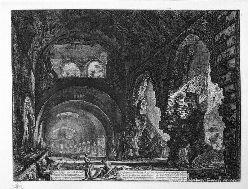 Nous vous proposons une reproduction artisanale sur toile du célèbre tableau 'Vue intérieure de la villa de Maecenas' de Giovanni Battista Piranesi, provenant du Musée de la Reproduction.