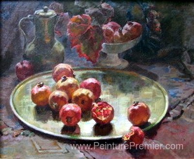 Nous vous proposons une reproduction artisanale sur toile du célèbre tableau 'Nature morte avec des grenades' de Ilya Mashkov, provenant du Musée de la Reproduction.