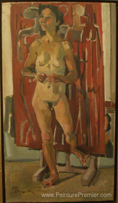 Nous vous proposons une reproduction artisanale sur toile du célèbre tableau 'Debout nu' de George Mavroides, provenant du Musée de la Reproduction.
