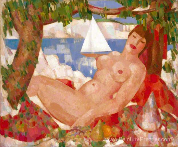 Nous vous proposons une reproduction artisanale sur toile du célèbre tableau 'Sieste' de John Duncan Fergusson, provenant du Musée de la Reproduction.