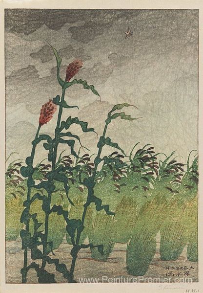 Nous vous proposons une reproduction artisanale sur toile du célèbre tableau 'Avant la tempête' de Ito Shinsui, provenant du Musée de la Reproduction.