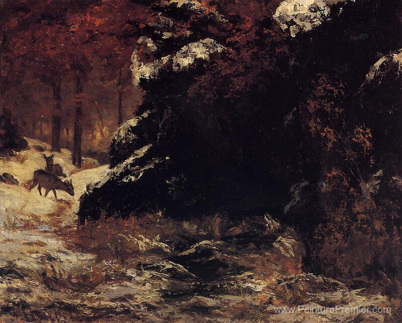 Nous vous proposons une reproduction artisanale sur toile du célèbre tableau 'Cerf dans la neige' de Gustave Courbet, provenant du Musée de la Reproduction.