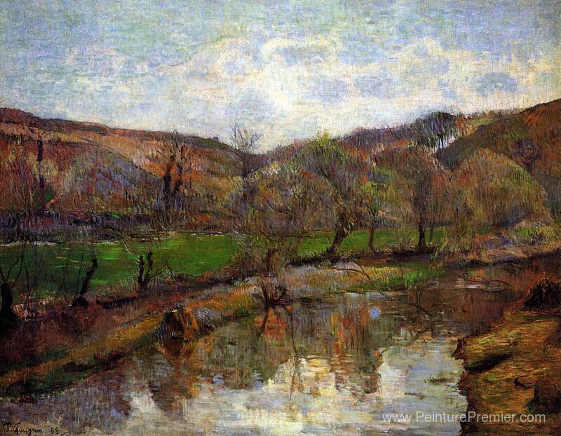 Nous vous proposons une reproduction artisanale sur toile du célèbre tableau 'En amont de pont-aven' de Paul Gauguin, provenant du Musée de la Reproduction.