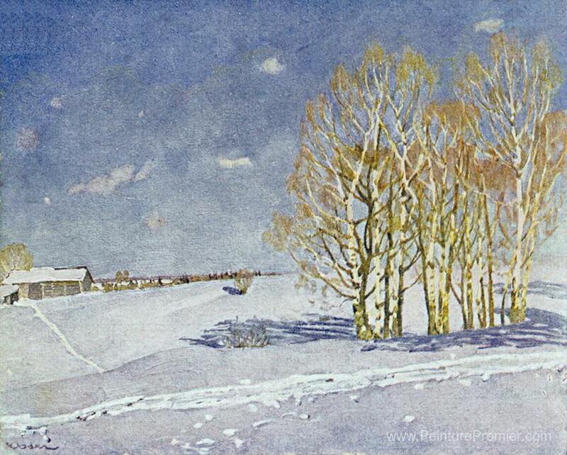 Nous vous proposons une reproduction artisanale sur toile du célèbre tableau 'La journée d'hiver bleue' de Konstantin Yuon, provenant du Musée de la Reproduction.