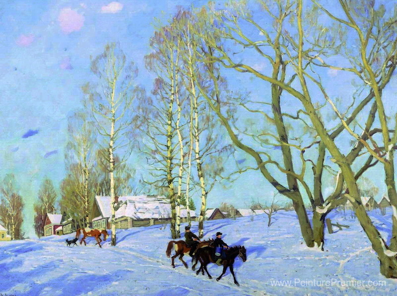 Nous vous proposons une reproduction artisanale sur toile du célèbre tableau 'Le soleil de mars' de Konstantin Yuon, provenant du Musée de la Reproduction.