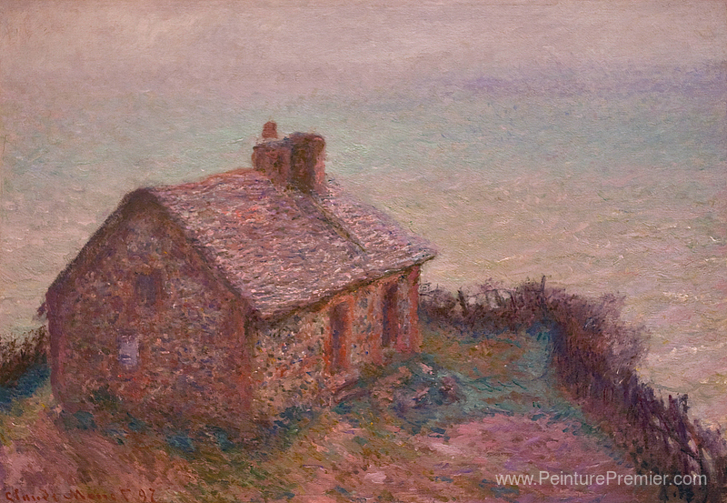 Nous vous proposons une reproduction artisanale sur toile du célèbre tableau 'Maison des douanes à Varengaville' de Claude Monet, provenant du Musée de la Reproduction.
