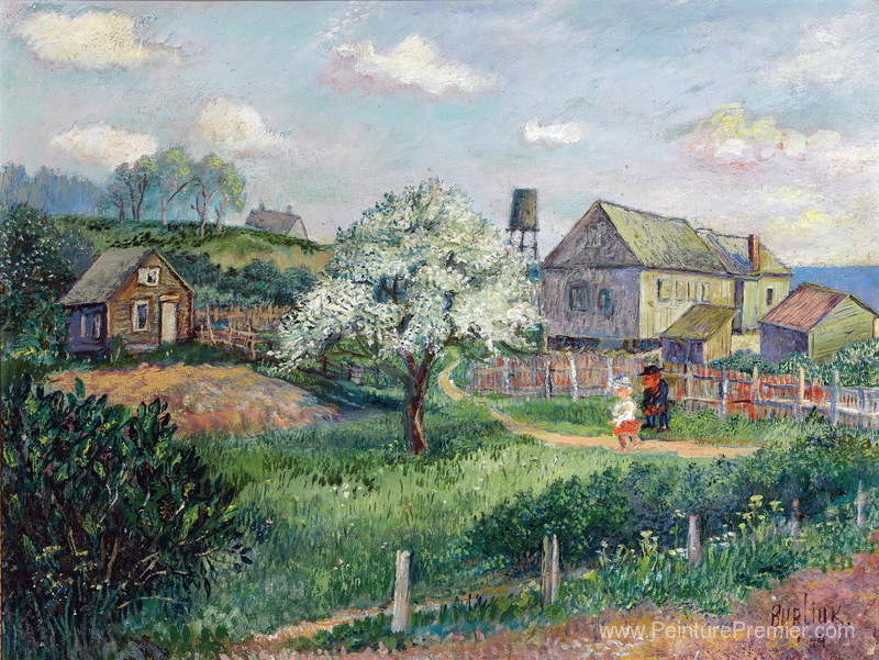 Nous vous proposons une reproduction artisanale sur toile du célèbre tableau 'Marcher par campagne' de David Burliuk, provenant du Musée de la Reproduction.