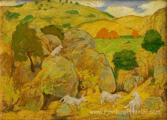 Nous vous proposons une reproduction artisanale sur toile du célèbre tableau 'Paysage de campagne' de Grégoire Michonze, provenant du Musée de la Reproduction.