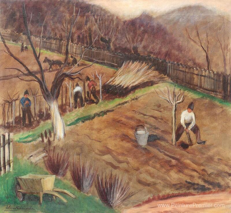 Nous vous proposons une reproduction artisanale sur toile du célèbre tableau 'Paysage de la vallée de Prahova' de Micaela Eleutheriade, provenant du Musée de la Reproduction.