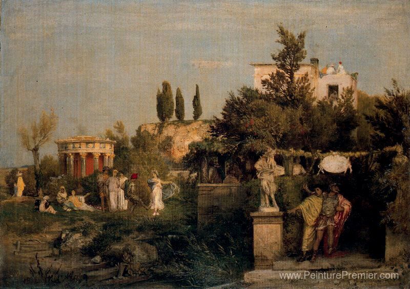 Nous vous proposons une reproduction artisanale sur toile du célèbre tableau 'Taverne dans la Rome antique' de Arnold Böcklin, provenant du Musée de la Reproduction.