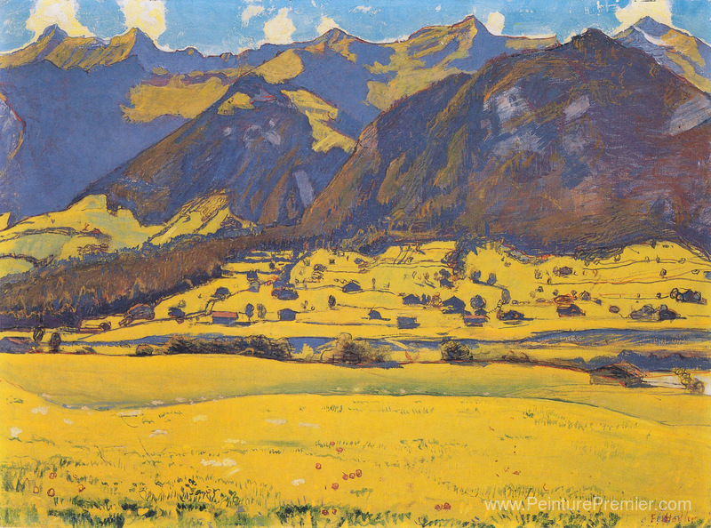 Nous vous proposons une reproduction artisanale sur toile du célèbre tableau 'Vue de la corne de Fromberg de Reichenbach' de Ferdinand Hodler, provenant du Musée de la Reproduction.