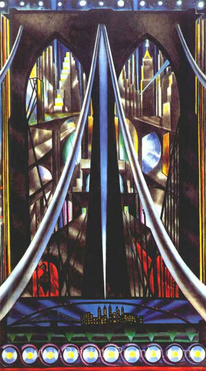 Nous vous proposons une reproduction artisanale sur toile du célèbre tableau 'Le pont de Brooklyn' de Joseph Stella, provenant du Musée de la Reproduction.