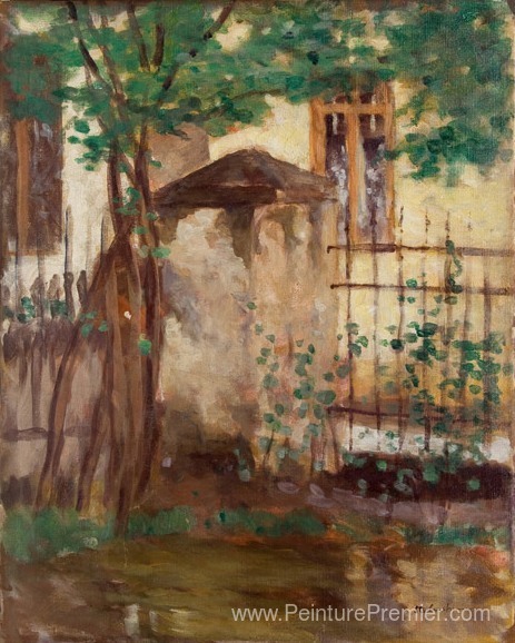 Nous vous proposons une reproduction artisanale sur toile du célèbre tableau 'Maison avec clôture' de Stefan Luchian, provenant du Musée de la Reproduction.