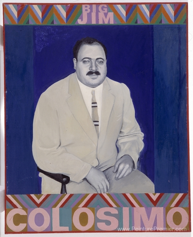 Nous vous proposons une reproduction artisanale sur toile du célèbre tableau 'Big Jim Colosimo' de Pauline Boty, provenant du Musée de la Reproduction.