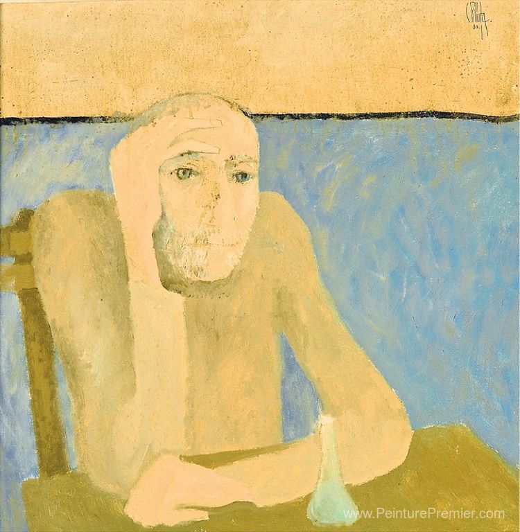 Nous vous proposons une reproduction artisanale sur toile du célèbre tableau 'Le philosophe' de Constantin Piliuta, provenant du Musée de la Reproduction.