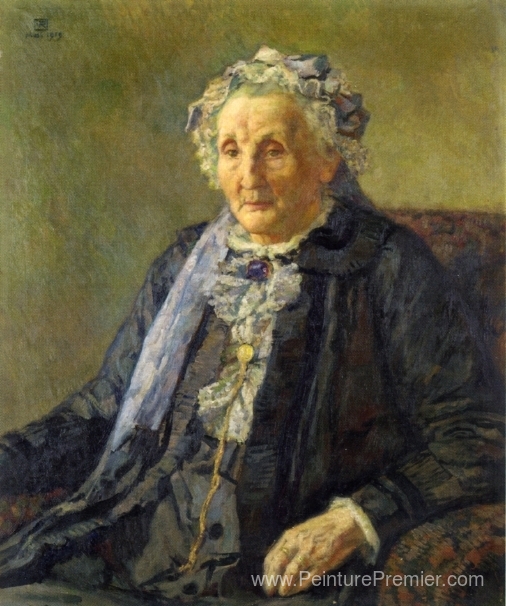 Nous vous proposons une reproduction artisanale sur toile du célèbre tableau 'Portrait de Madame Monnon' de Theo van Rysselberghe, provenant du Musée de la Reproduction.