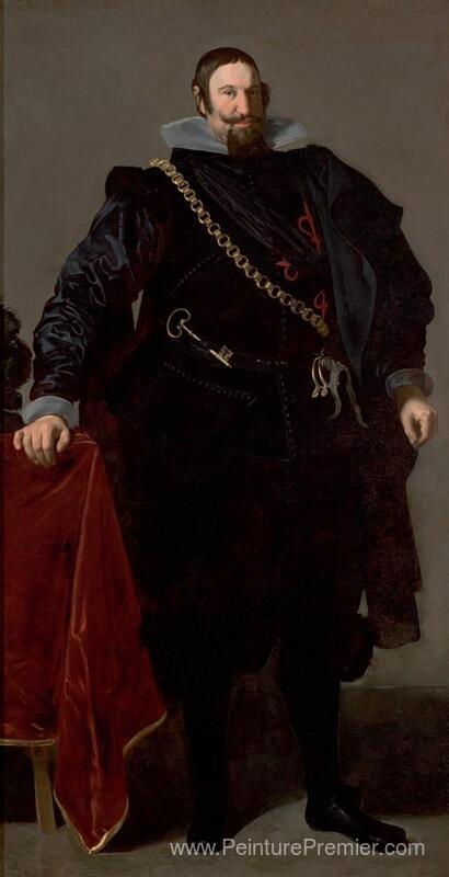 Nous vous proposons une reproduction artisanale sur toile du célèbre tableau 'Portrait du comte duc d'Olivares' de Diego Velazquez, provenant du Musée de la Reproduction.
