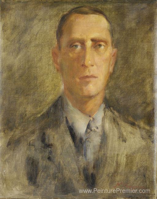 Nous vous proposons une reproduction artisanale sur toile du célèbre tableau 'Portrait d'un homme' de Nikos Nikolaou, provenant du Musée de la Reproduction.