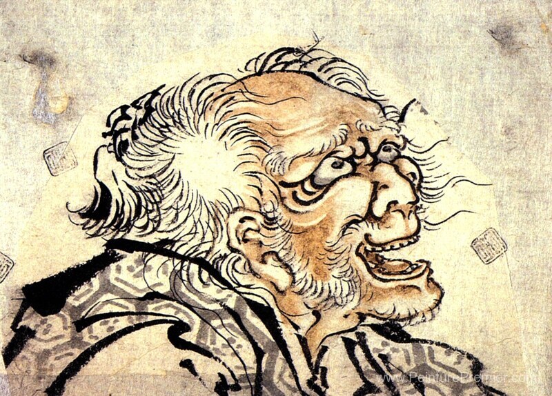 Nous vous proposons une reproduction artisanale sur toile du célèbre tableau 'Tête d'un vieil homme' de Katsushika Hokusai, provenant du Musée de la Reproduction.