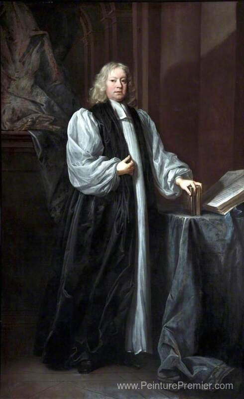 Nous vous proposons une reproduction artisanale sur toile du célèbre tableau 'Thomas Sprat' de John Riley, provenant du Musée de la Reproduction.