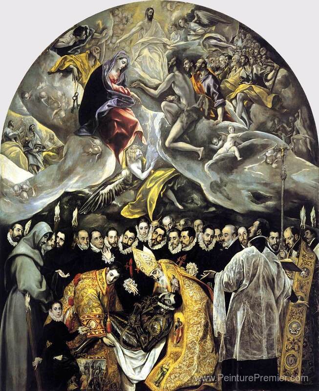 Nous vous proposons une reproduction artisanale sur toile du célèbre tableau 'L'enterrement du comte d'Orgaz' de El Greco, provenant du Musée de la Reproduction.