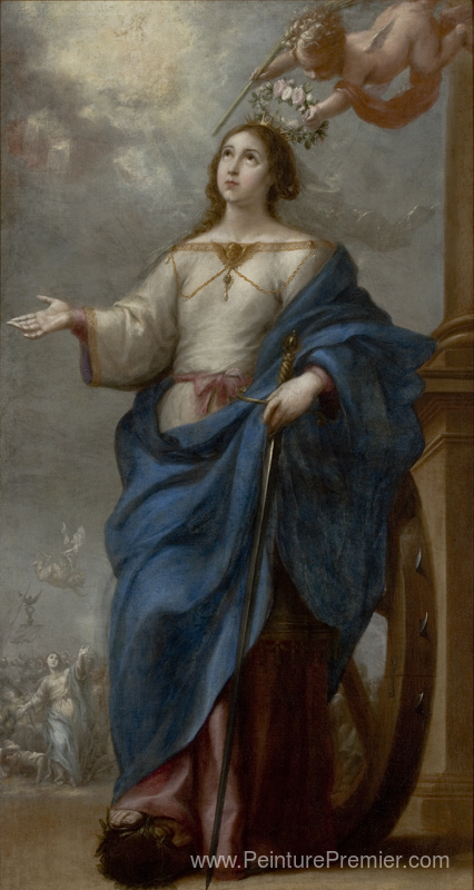 Nous vous proposons une reproduction artisanale sur toile du célèbre tableau 'Saint Catherine d'Alexandrie' de Bartolome Esteban Murillo, provenant du Musée de la Reproduction.