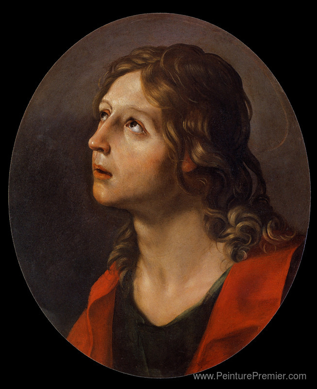 Nous vous proposons une reproduction artisanale sur toile du célèbre tableau 'Saint-Jean de l'évangéliste' de Guido Reni, provenant du Musée de la Reproduction.