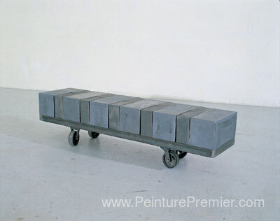 Nous vous proposons une reproduction artisanale sur toile du célèbre tableau 'Belgische Kiste IV' de Joachim Bandau, provenant du Musée de la Reproduction.