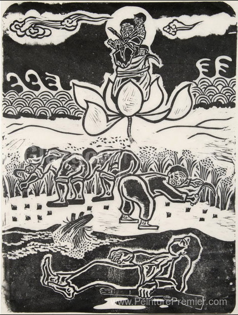 Nous vous proposons une reproduction artisanale sur toile du célèbre tableau 'Résurrection' de Hong Song-dam, provenant du Musée de la Reproduction.